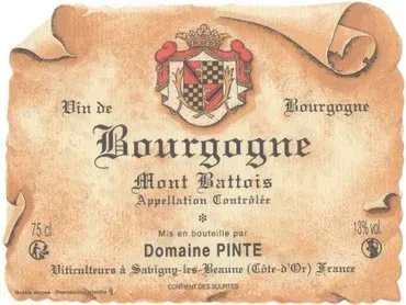Le bourgogne blanc « Le Mont Battois » révèle toute la richesse du Domaine Pinte et du cépage chardonnay sur des sols argilo-calcaires.
