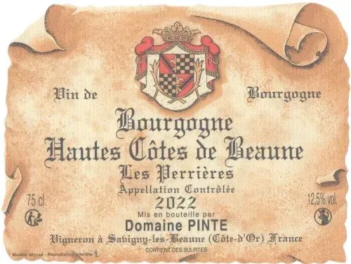 Le bourgogne Hautes Côtes de Beaune « Les Perrières » est un vin rouge de Bourgogne issu des coteaux plus élevés, offrant fraîcheur et minéralité. Son profil aromatique associe fruits rouges, notes boisées et épices subtiles.